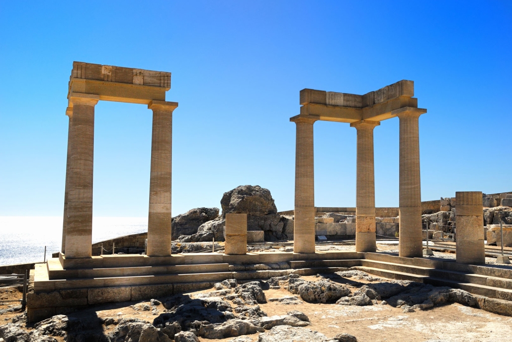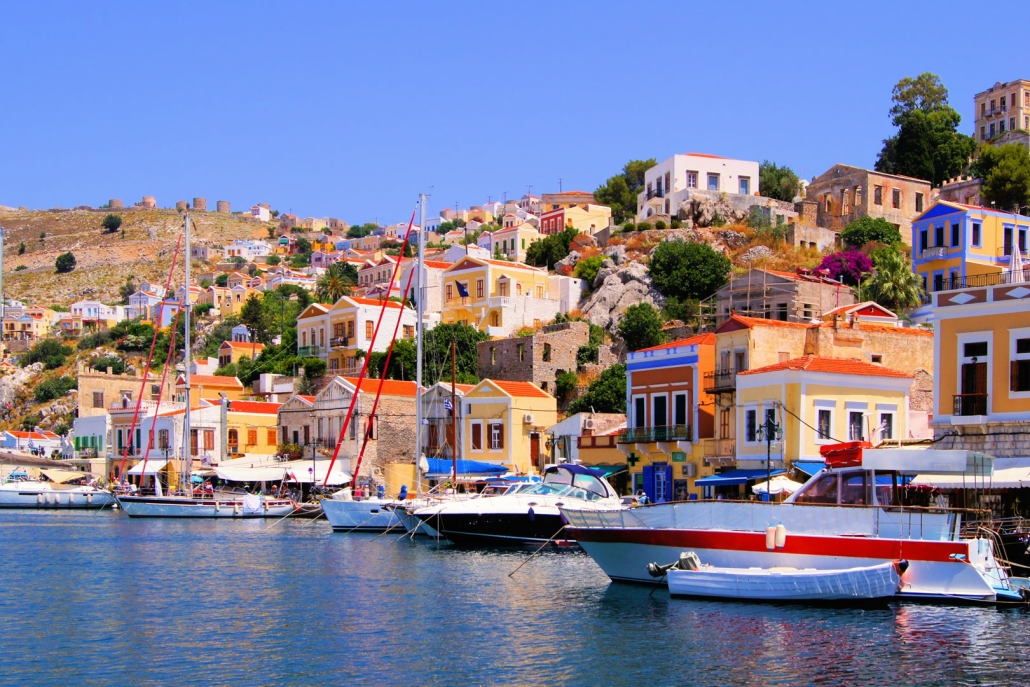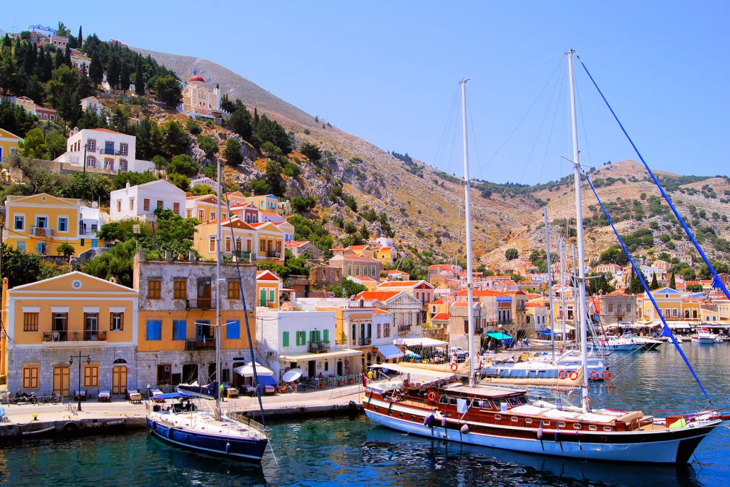 Hilltop village with colorful homes, busy tavernas & a 5-tier bell tower at Isodia Theotokou Church.
